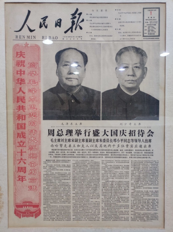 1.1965年国庆节的人民日报头版。刘少奇一年多后被打倒;