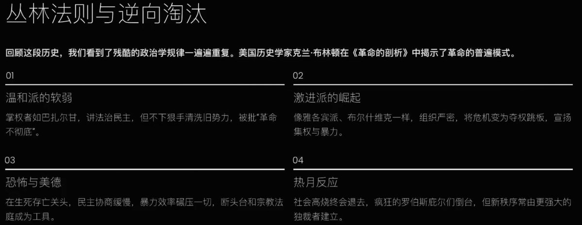 我在伊朗那期节目分析为什么伊朗最后会是宗教神权上台,这正是美国历史学家克兰布林顿在《革命的剖析》中揭示的革命的普遍发展模式: