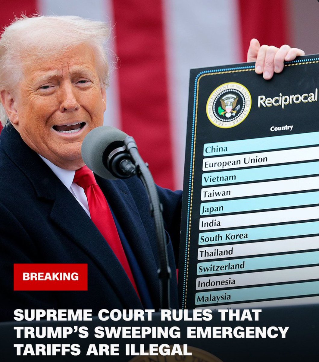 美国最高法院以6-3裁定特朗普在关税问题上败诉。