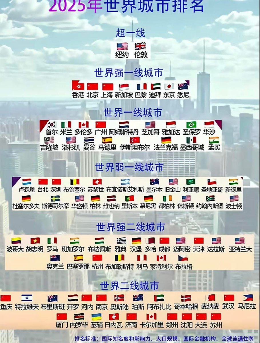我居然生活在全球(弱)一线城市,大家来数数,这些世界名城,你去过哪些城市?我估计还有至少一半没有打卡。