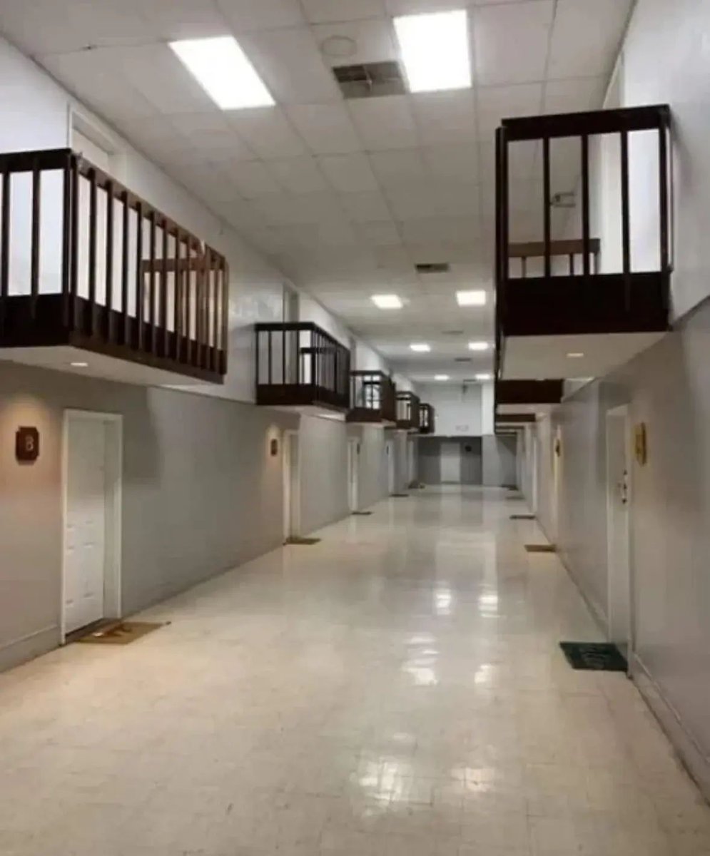 This apartment complex has an indoor balcony.