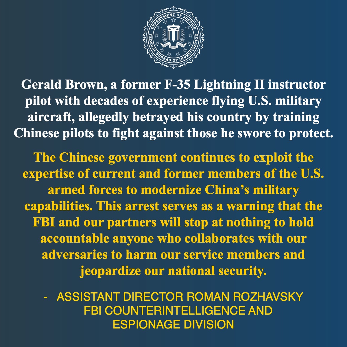 CASE UPDATE from Former U.S. Air Force Pilot Arrested for Providing Defense Services to the Chinese Military and provided assistance in this case.