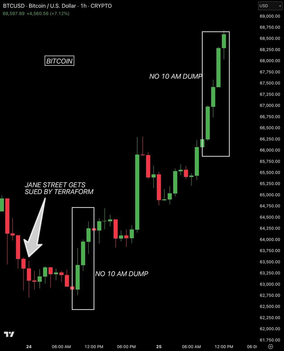 易理华、Garrett:请苍天,辨忠奸!😤 经过社区的线索拼凑,似乎是找到「庄家」了 —— 这篇阅读量近 150w 的文章列举了 Jane Street 的几大罪状,原文传送门:https://t.co/CvnaEfEk4W 1️⃣推动或直接导致了 LUNA 崩盘 2️⃣利用其 BTC ETF 授权参与者的特权系统性操纵价格,每天 10 点精准抛售以触发多头清算,进一步挤压价格 3️⃣利用监管漏洞建立隐藏的空头头寸,配合砸盘获取巨额利润 简街!你害人不浅