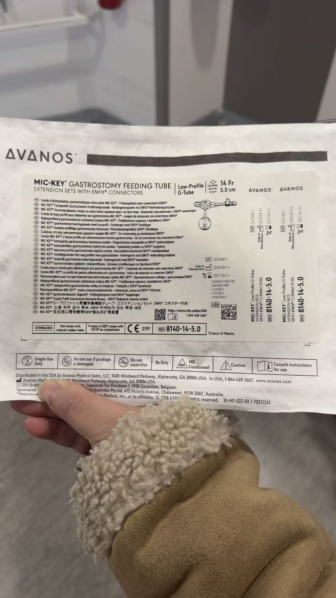 请问有在美国的医学工作的推友吗?紧急有偿代购一个产品!刚刚接到这位姑娘的电话,我只能想到先来推上求助了! 现在她的孩子已经退化到了丧失行走、吃饭、说话的功能了,吞咽困难,目前插着胃管,国内的医生说,如果可以买得到这个MIC-KEY胃造瘘管,可以给她做这个手术。但是这个小东西在国内买不到,是美国生产的,药店可能也没有,不知道能否在医院买到!