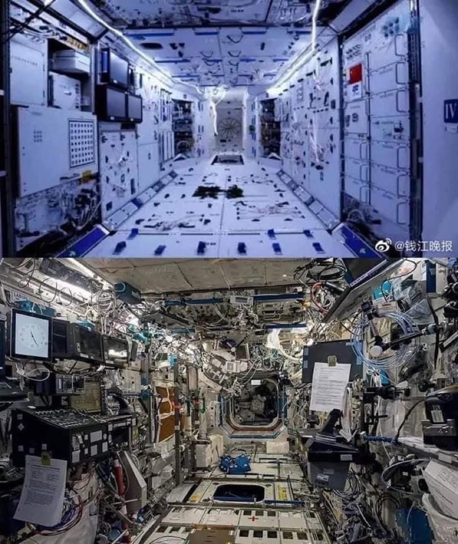 Comparison between China Tiangong and the ISS Space Station. What do you notice?