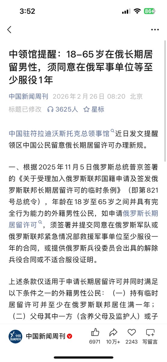 具体就是18-65岁外籍男性,想申请长期居留许可?先签至少1年兵役合同!