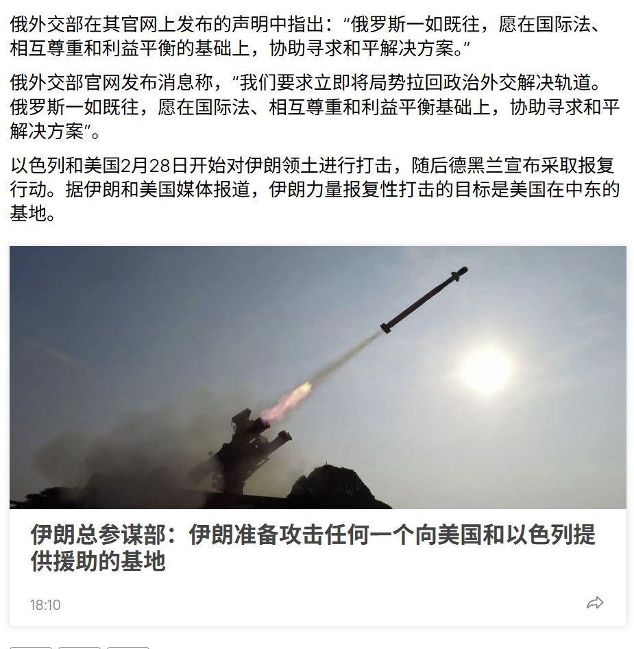 俄外交部:美国和以色列对伊朗的袭击是鲁莽之举
