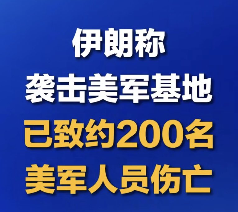 伊朗伊斯兰革命卫队表示,在伊朗发起的导弹袭击中,至少有200名美军人员伤亡。😂👍🐮