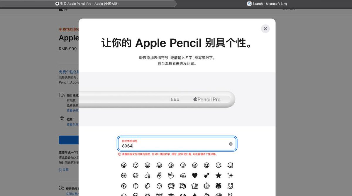 苹果官网有个镌刻功能,可以把想写的内容刻在购买的苹果设备上。我发现了苹果居然在这上面有审查,不同地区的审查强度不一样。