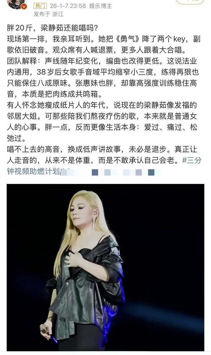 梁静茹关闭微博,就因为上个月在厦门演唱会中,网友说她180斤,酷似张惠妹,就再也没有“勇气”了吗?