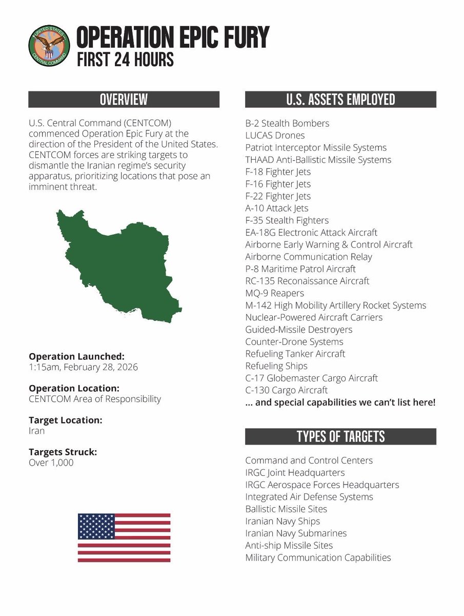 美军说过去24小时打击了1000多个伊朗目标,使用了: