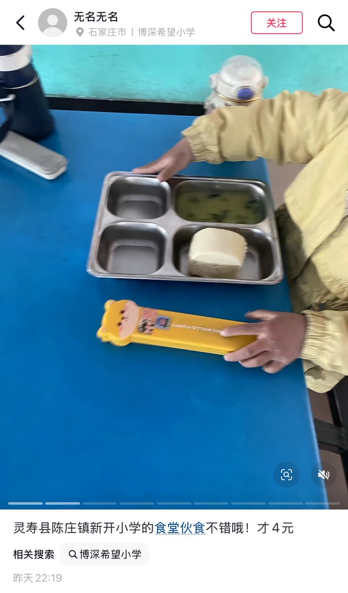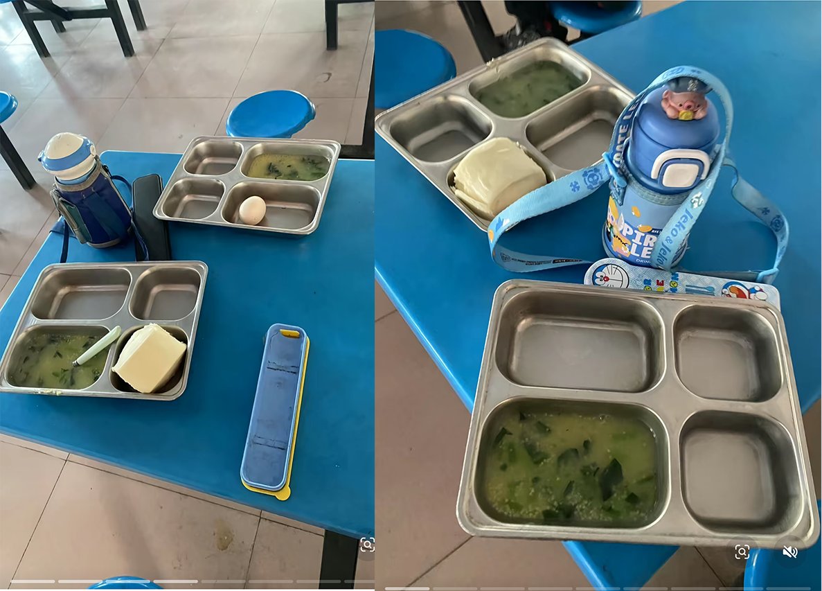 3月2日,河北石家庄。一位母亲曝光了灵寿县博深希望小学的4元早餐。图片显示,孩子的餐盘里仅有一点白菜汤和一个馒头。