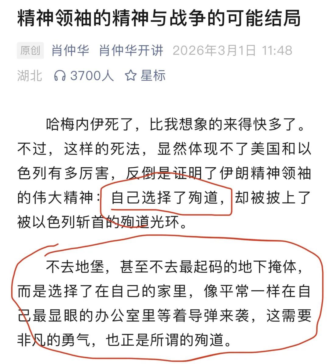 现在墙内已经开始说哈梅内伊是故意殉道的