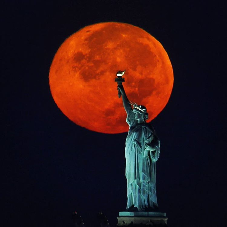 Blood Moon rises over the Statue of Liberty, lighting up the skies of New York City