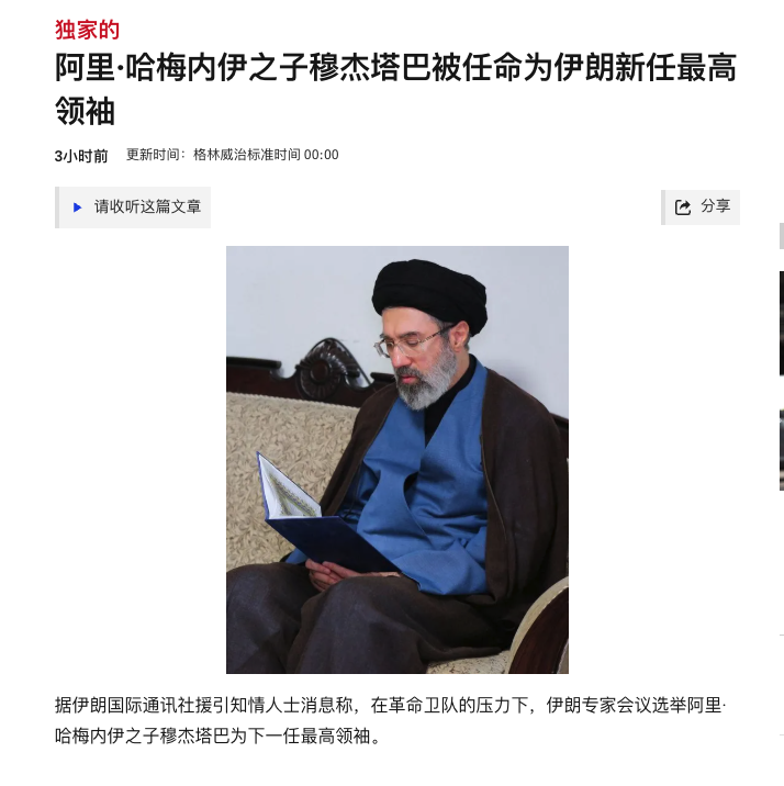 哈梅内伊的儿子穆杰塔巴·哈梅内伊担任了伊朗最高领袖
