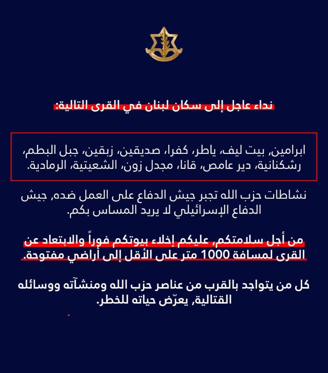 3月4日,以色列国防军刚刚对黎巴嫩南部另外13个村庄发布了疏散令。