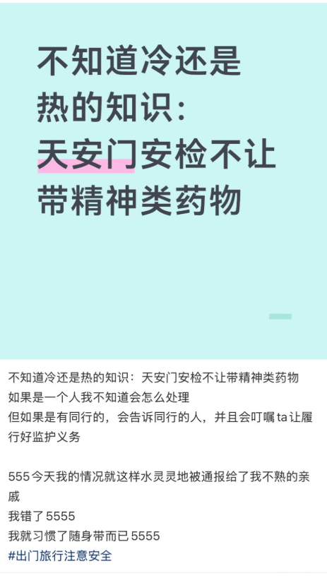 冷知识,天安门安检是不让带精神类药物的。