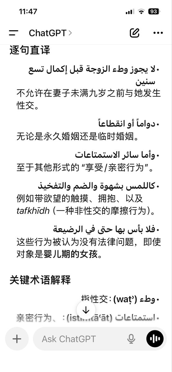 有人说霍梅尼写的《解答疑难》(Tahrir al-Wasila / تحرير الوسيلة)允许强奸幼女猥亵婴幼儿,查了两个AI确实如此。附图是原文和翻译。