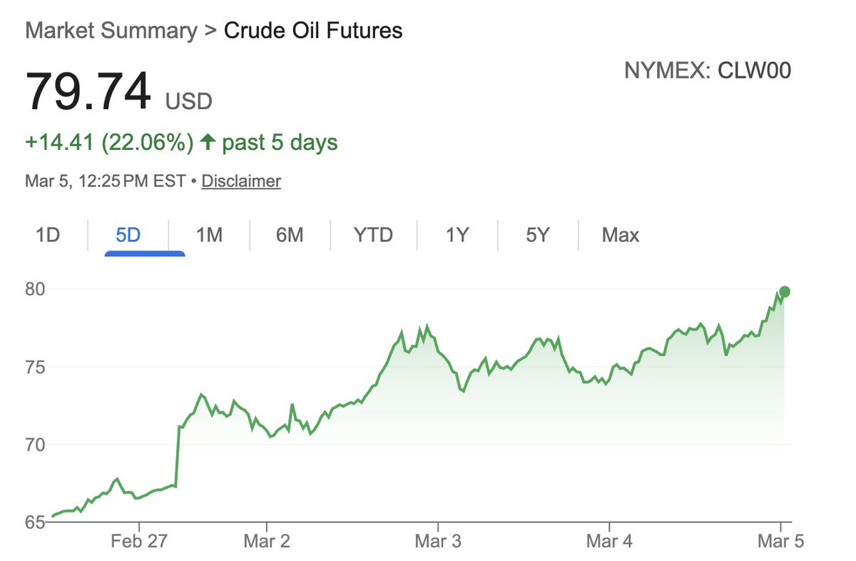 过去5天国际油价上涨22%。