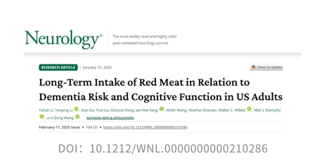 哈佛大学团队在《Neurology》上的研究则揭示了红肉对大脑的影响。数据显示:每天摄入加工红肉超过0.25份(约11克)的人,相比几乎不吃的人,痴呆风险升高13%,整体认知和言语记忆的衰退速度分别加快了0.82年和0.85年。
