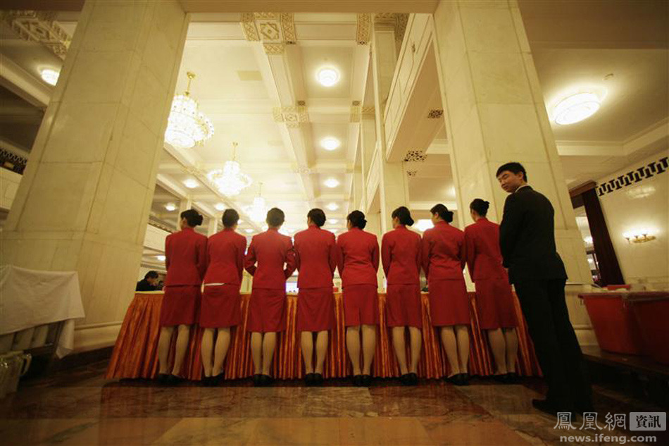 1.2009年3月12日,政协会议闭幕式期间,一群服务人员在天安门广场合影留念。 2.2009年3月3日,政协会议开幕式结束后,列队站立的服务人员。 3.2011年3月13日,北京人民大会堂,服务人员在为代表们的茶杯添水。 4.2004年3月12日,政协闭幕会议,一位服务员走在人民大会堂前。 ---那些年,外媒镜头下的两会
