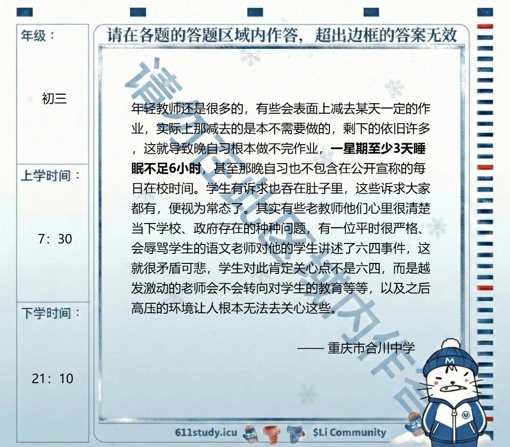 学校作业根本做不完,每周至少三天睡眠不足6小时