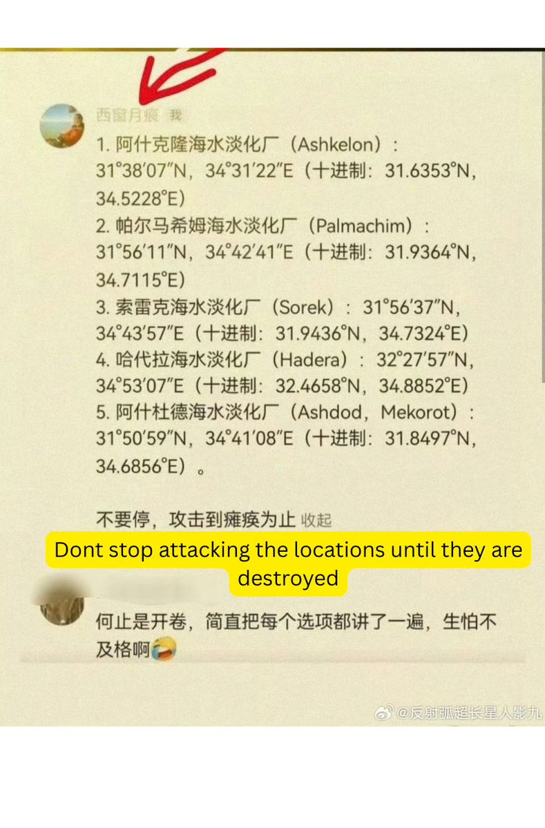 A certain "allied" country is now giving war crime level advice to Iran. Please do not complain when other do the same when the time comes. Advice mainly deal with the water source.