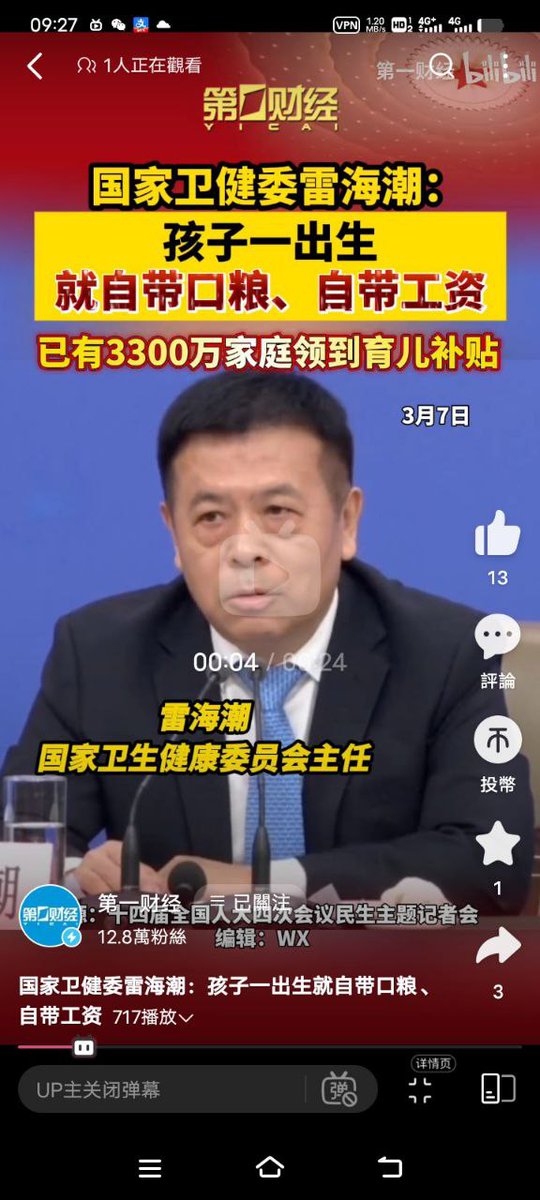 后续:B站官媒有关卫健委主任雷海潮说“孩子一出生就自带粮食,自带工资”的视频已关闭评论关闭弹幕。
