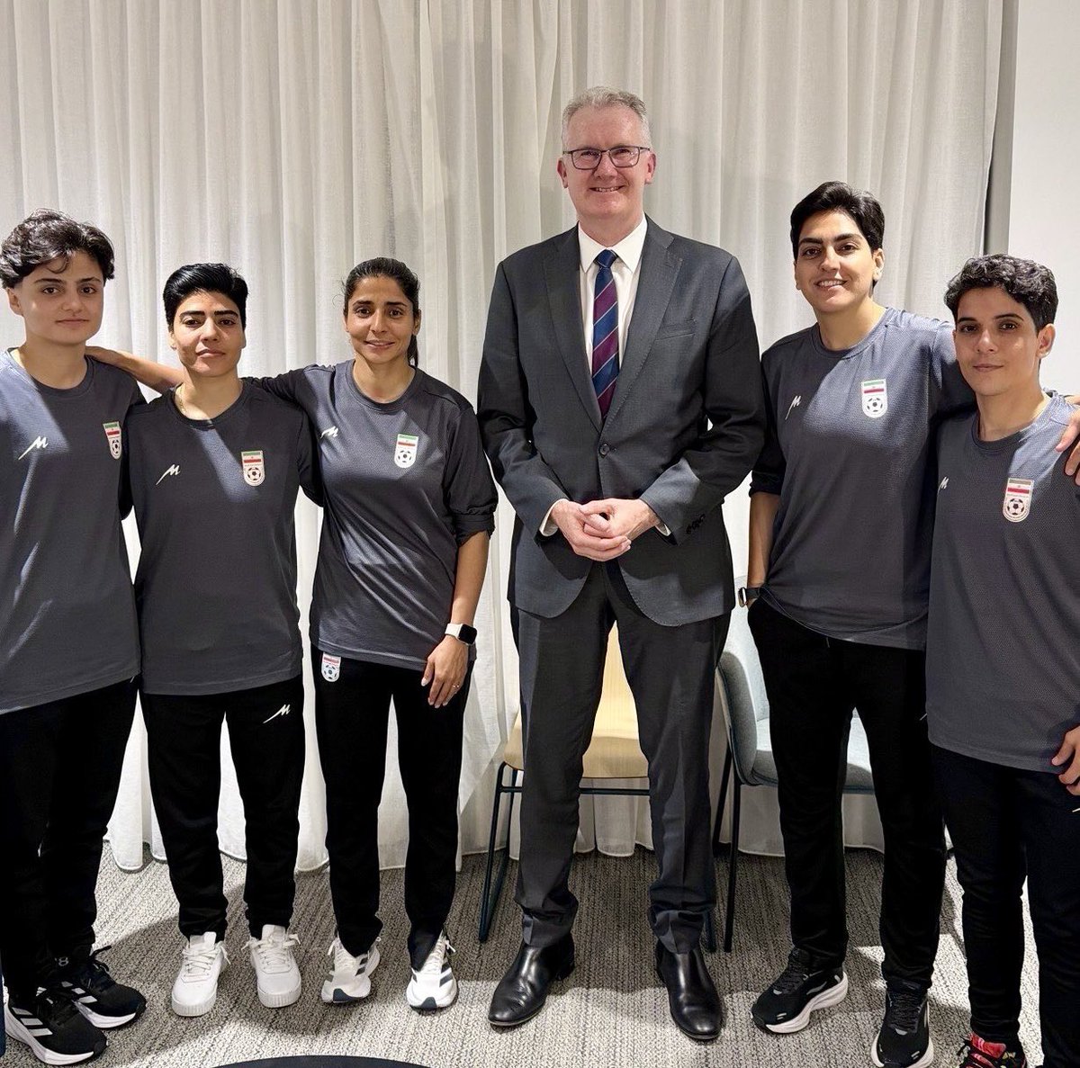 此前比赛中拒绝唱国歌的5名伊朗女足队员,在3月10日顺利拿到澳洲庇护文件。澳大利亚内政部长亲自来到酒店为她们签署!