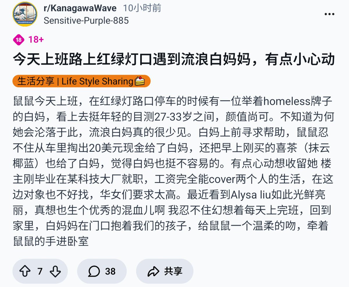 这种流浪汉讨钱白妈妈后面都有一个壮汉白爸爸老公的,套路是女方讨钱,男方在后面看着,一旦情况不对,比如有人打这女的主意,摸两把,男的就跑出来打架。 小黄男踏实小黄男心经,别每天寻思流浪汉白妈妈,人家真看不上你。。。 我之前也遇到过问我掏钱的流浪汉白妈妈,我就直接走了,一转身,在另一家超市,她和她白爸爸老公在超市买东西。。。