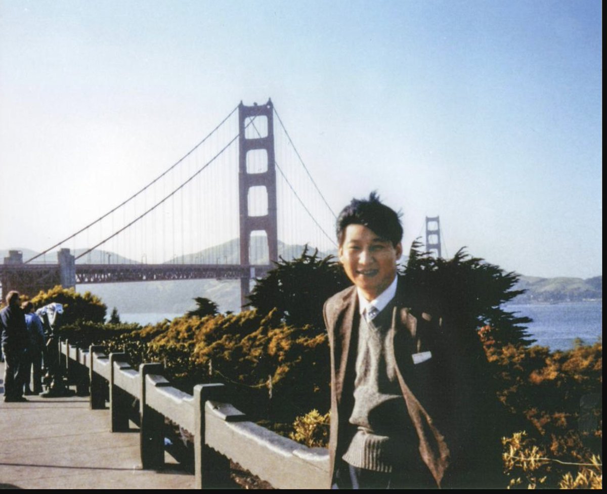 帖文配图为 1985年,习近平来旧金山考察时,在金门大桥拍下的老照片。