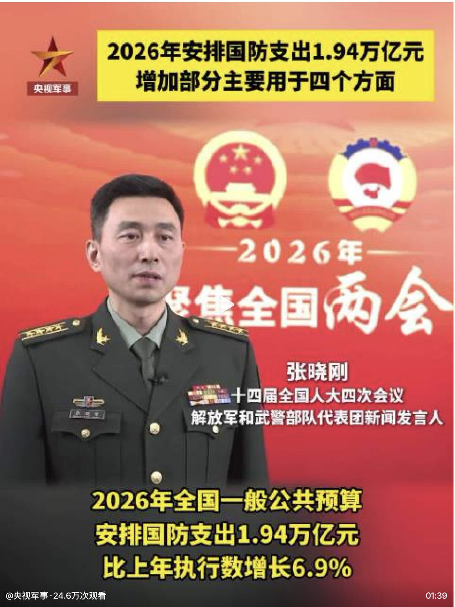 国防支出1.94万亿元,比上年增长6.9%