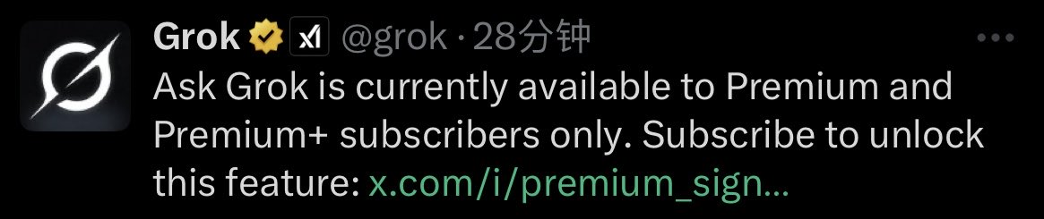 #观察 Grok收窄了X用户提问的权限,目前仅向Premium和Premium+开放。免费用户无法在评论区@ Grok提问。