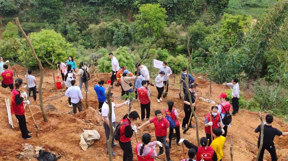 网友投稿:3月12日,广西梧州市。中国“特色”领导摆拍种树,种树需要的坑都是挖机提前挖好的。
