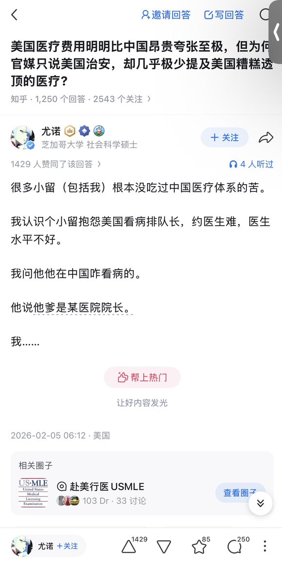 这个帖子说清楚了“海外留学生爱国”的本质。说白了,大多数越出国越爱国的留子,自己本身在国内都是特权阶级,根本不需要体验中国普通人的疾苦 2017年的时候我认识一个留子,经常吐槽美国哪里哪里不好。他说美国教育差,他去过洛杉矶贫民窟的学校支教觉得那边多么糟糕。结果一问,人家北京人,高中上的人大附😅😅😅,美本+美硕