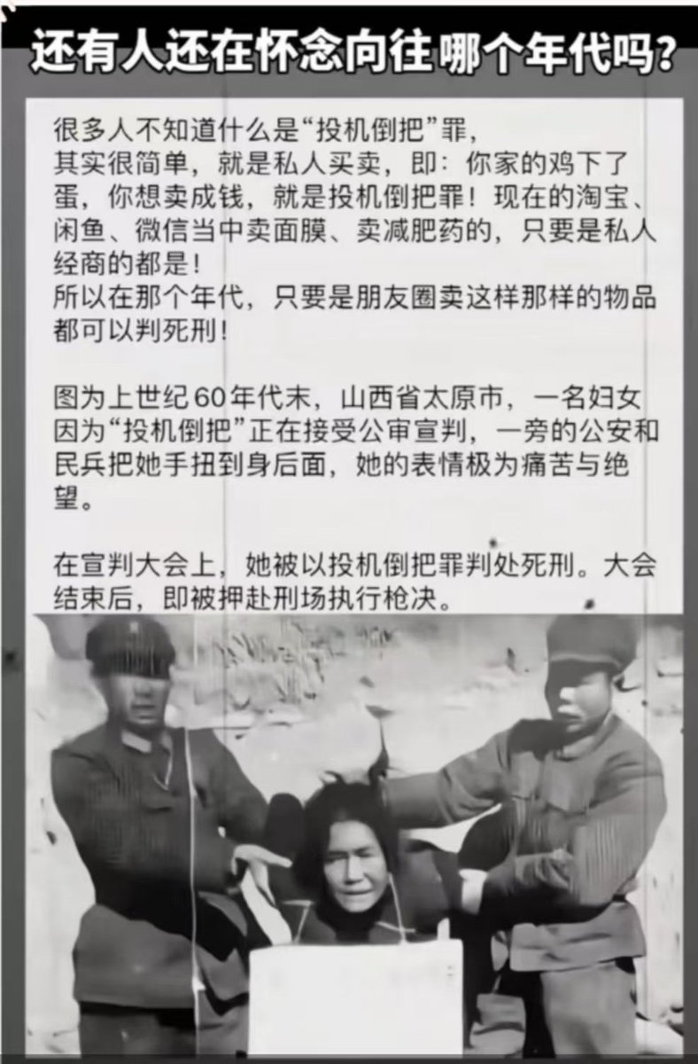 This happened in 1960s. The women in the pic only sold a few home-produced eggs or corns or sweet potatoes in local market then caught by the authorities. Her crime? "Engaging in speculation."