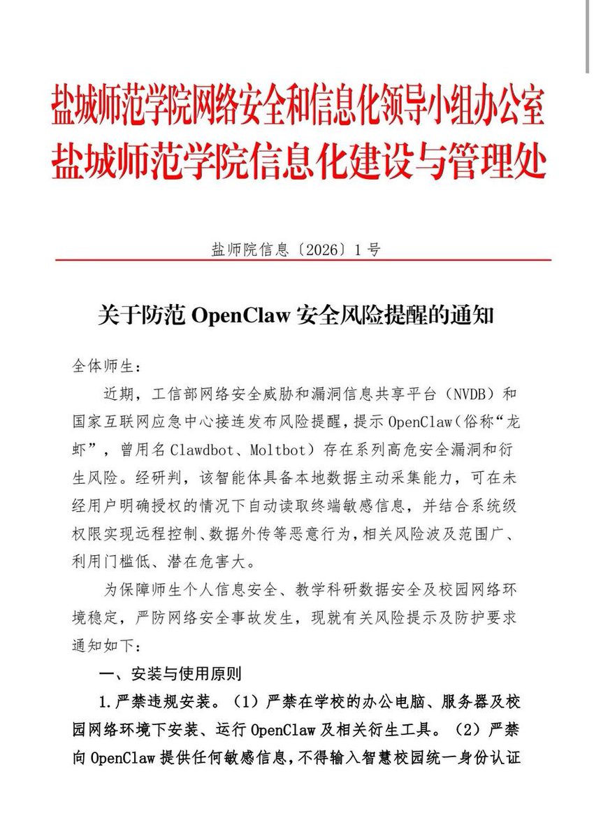 网友投稿:盐城师范学院 发布公告开始限制openclaw