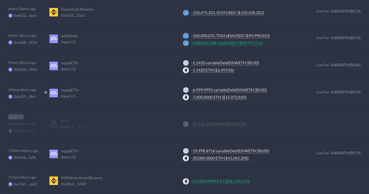 投降还是误会?易老板的 2.7 万枚 $ETH 又从币安取出来了🤔 15 分钟前,早上将 ETH 充值进 #Binance 的 Trend Research 关联地址又将同样数值的 ETH 提出,随后偿还了 Aave 的借款,又将 1.5 亿美元的 USDC 充值回去 充值价格 $2063.72,提出价格 $2146.91,如果真的借币卖空了将亏损 224.6 万美元 钱包地址 0x25ff13e9e6574a67393101f65a4e23718b0cbeac