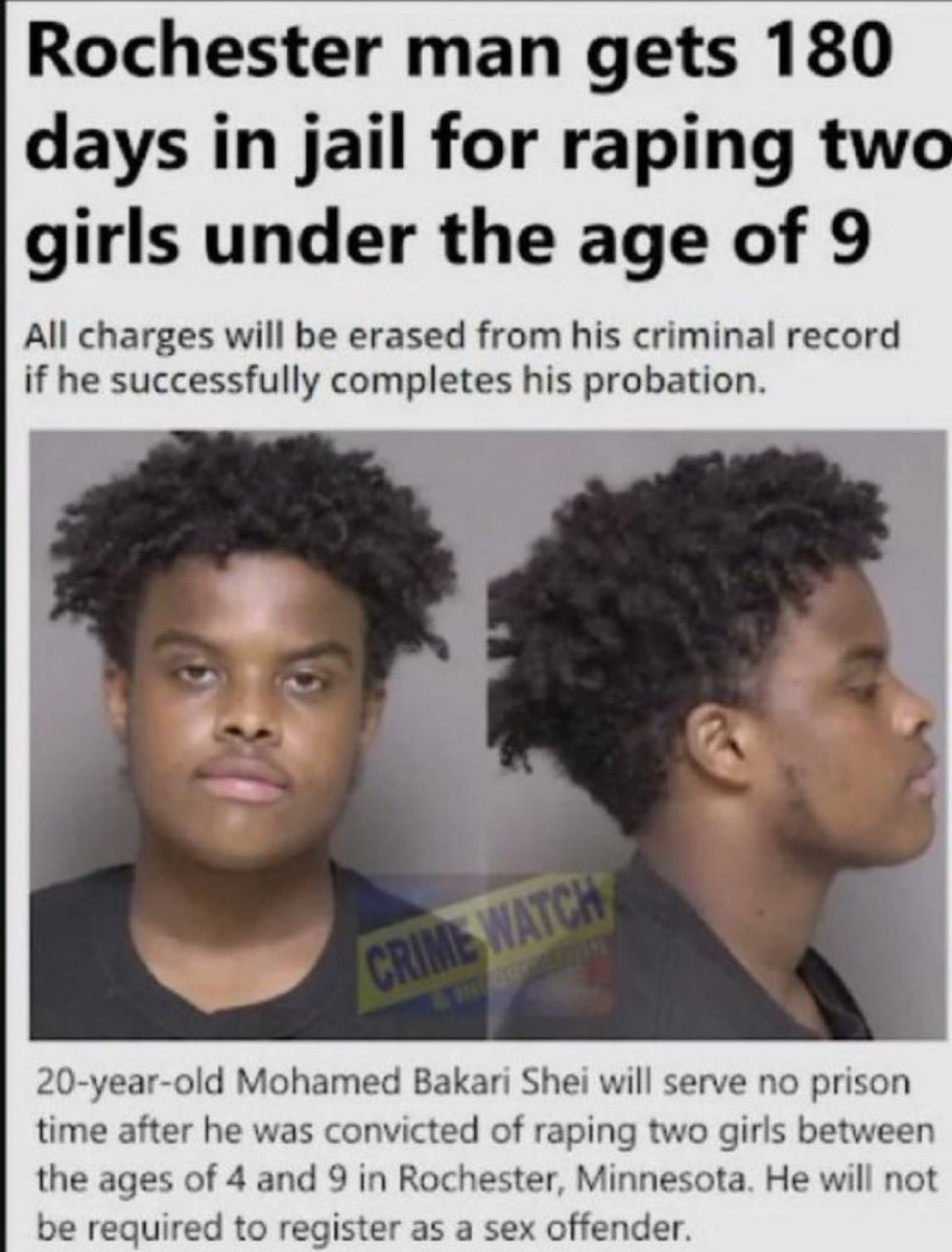 明尼苏达州的20岁穆斯林Mohammad Bakeri Shei只因为强奸两名小女孩(4岁和9岁)就被判了180天监禁。