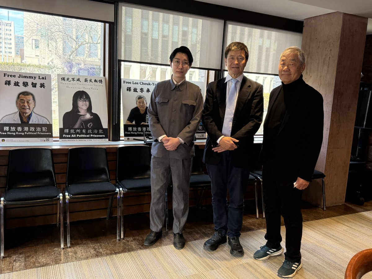 现场也共同为香港政治犯发声。过去香港社会为守护六四真相、追求正义付出了巨大努力。如今邹幸彤、李卓人、黎智英等人却面临重刑。像多伦多支联会这样的海外民间组织,在民主国家继续守护记忆与正义,责任重大。