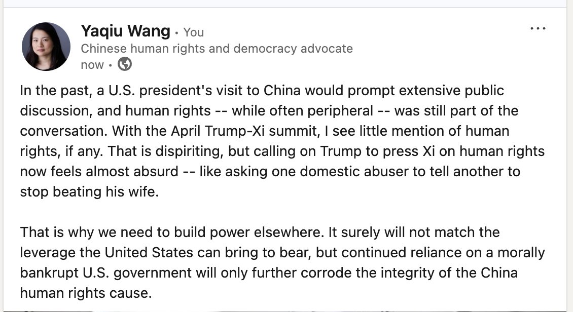 No one is talking about human rights in the lead-up to the Trump-Xi summit. That is sad, but talking about it would almost feel absurd.
