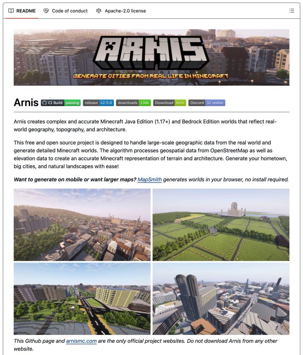 它叫做Arnis。你可以选择地球上的任何一个地点。Arnis会在Minecraft中一格一格地把它建造出来。