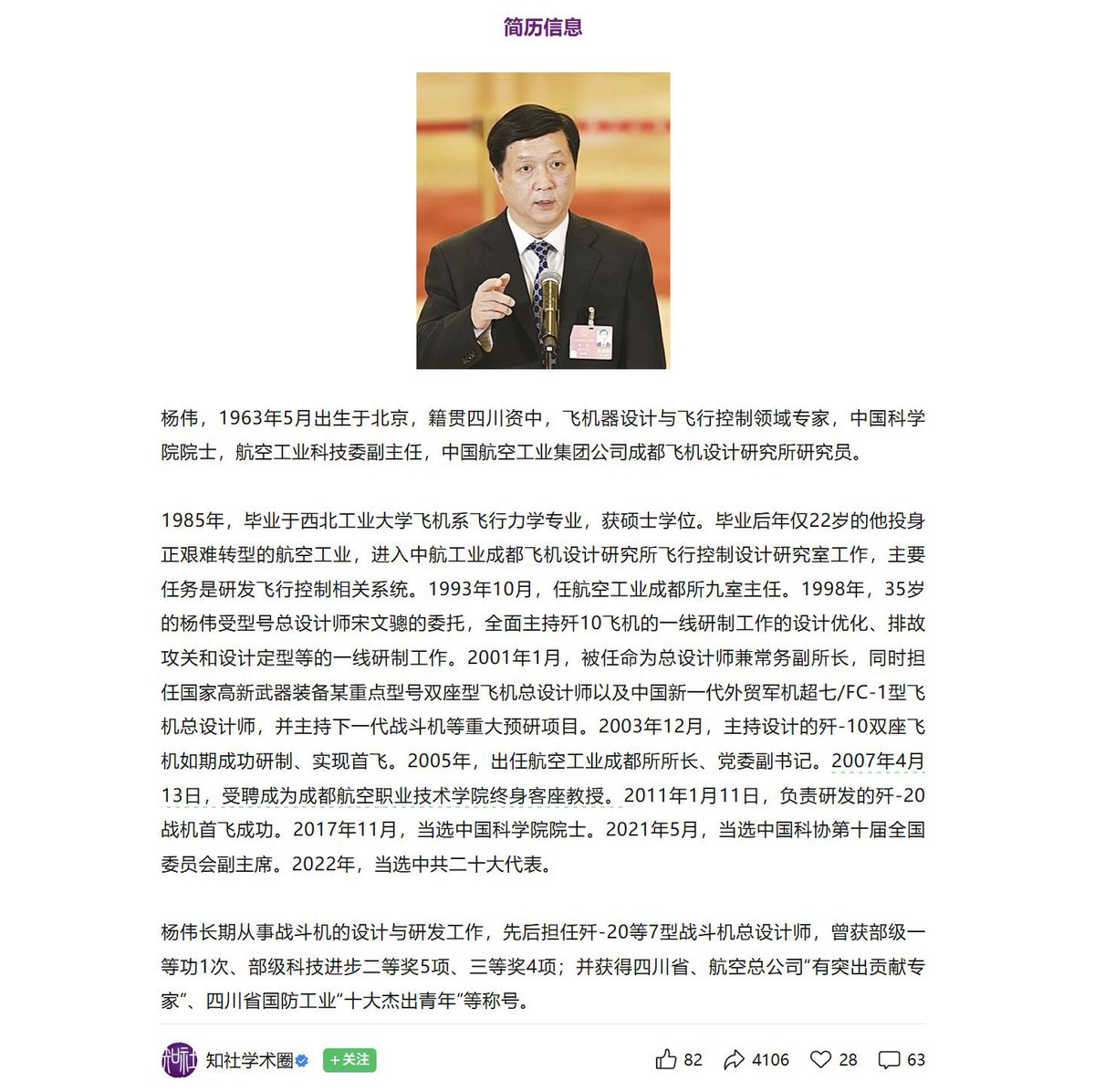 The Chinese Academy of Sciences has removed the profile of Academician Yang Wei, the “chief designer of the J-20.” As of March 17, Yang Wei’s biography can no longer be found on the official website of the Chinese Academy of Sciences. The rumor goes that Chinese radar test their stealth capability using J 20 as a baseline. The Chinese radar are able to track the J20.