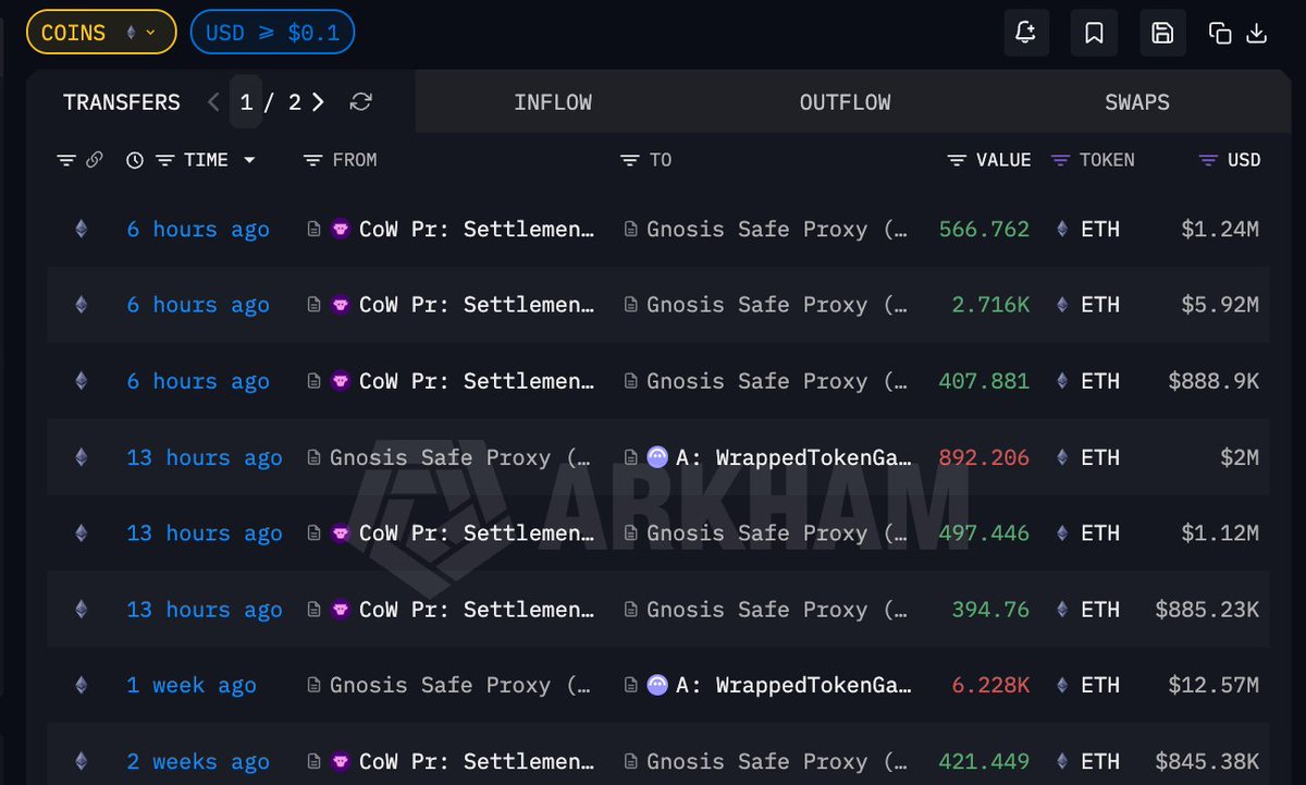 E 卫兵越来越多了,又一大户两周买入 10811.34 $ETH 💫地址 0x65B…5Ce93 自 03.06 以来通过 Cowswap 在链上买入了价值 2258 万美元的 ETH,平均成本 $2088.79,过去 13 小时就买了 4583 ETH在此之前他已有 5 个月没有交易过 ETH,钱包地址 0x65b424a5655d8224dba61a31788368268245ce93