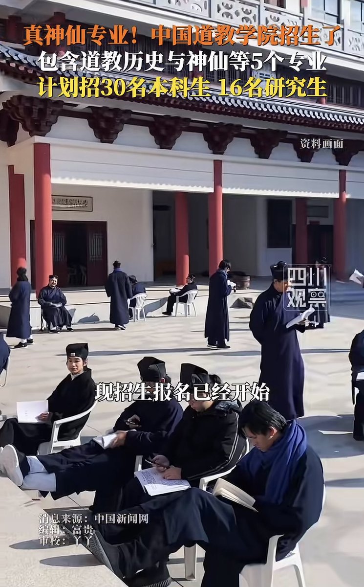 中国道教学院计划招30名本科生、16名研究生,包含道教经义、道教历史与神仙等5个专业。