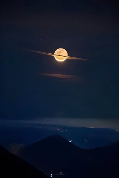 The moon turns into Saturn. Stunning ring-like clouds form in the night sky.