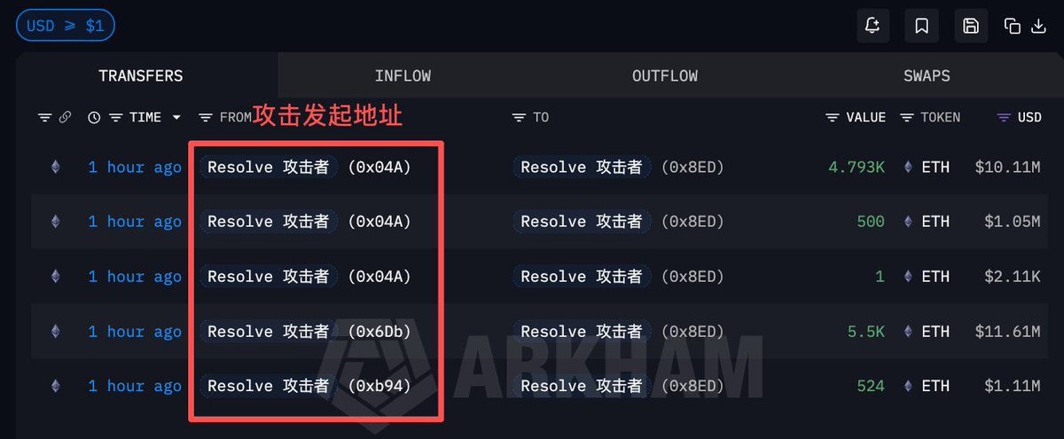 Resolv 攻击者截止目前已买入 11422 枚 ETH,价值 2366 万美元👀