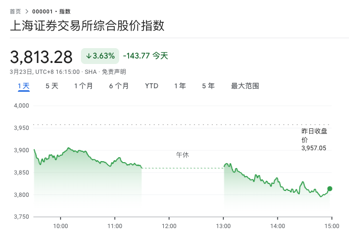 上证指数今天暴跌3.63%