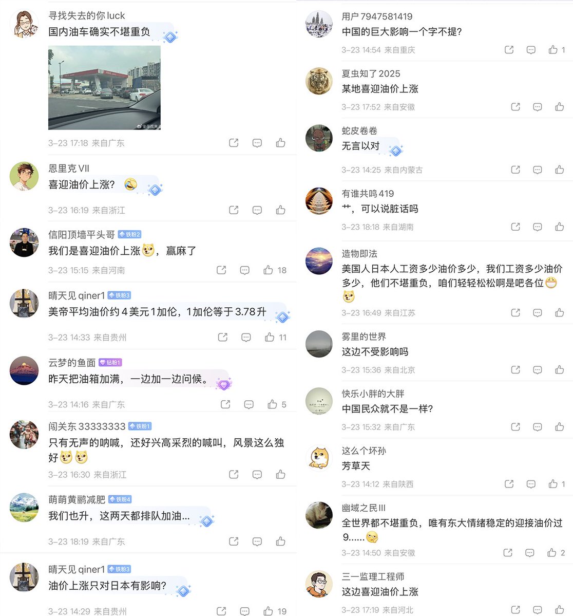 网友们表示:只有咋们这边风景独好,全国各地喜迎油价上涨。
