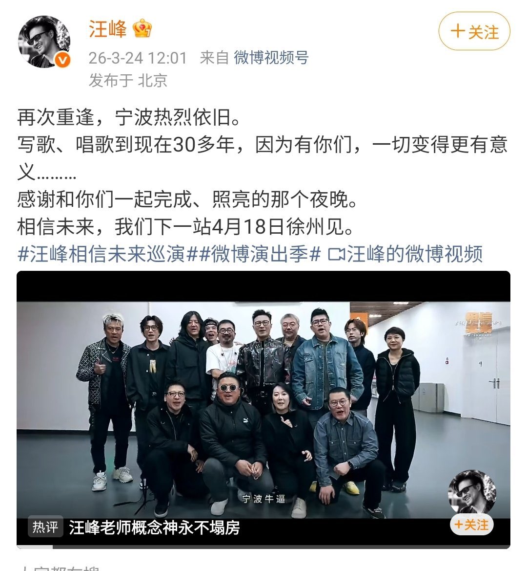 今天3月24日,又是汪峰宁波演唱会
